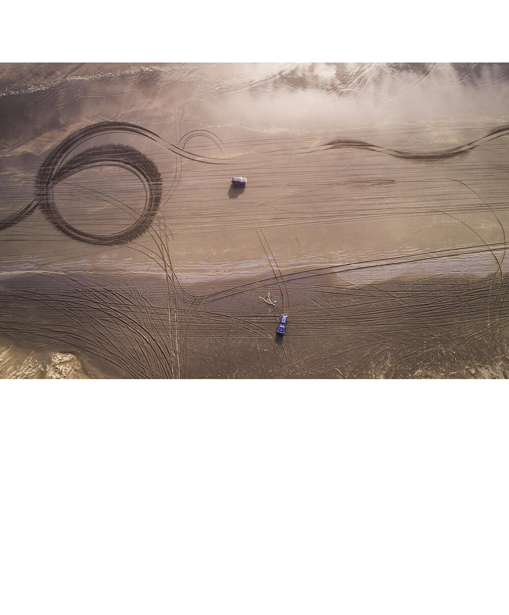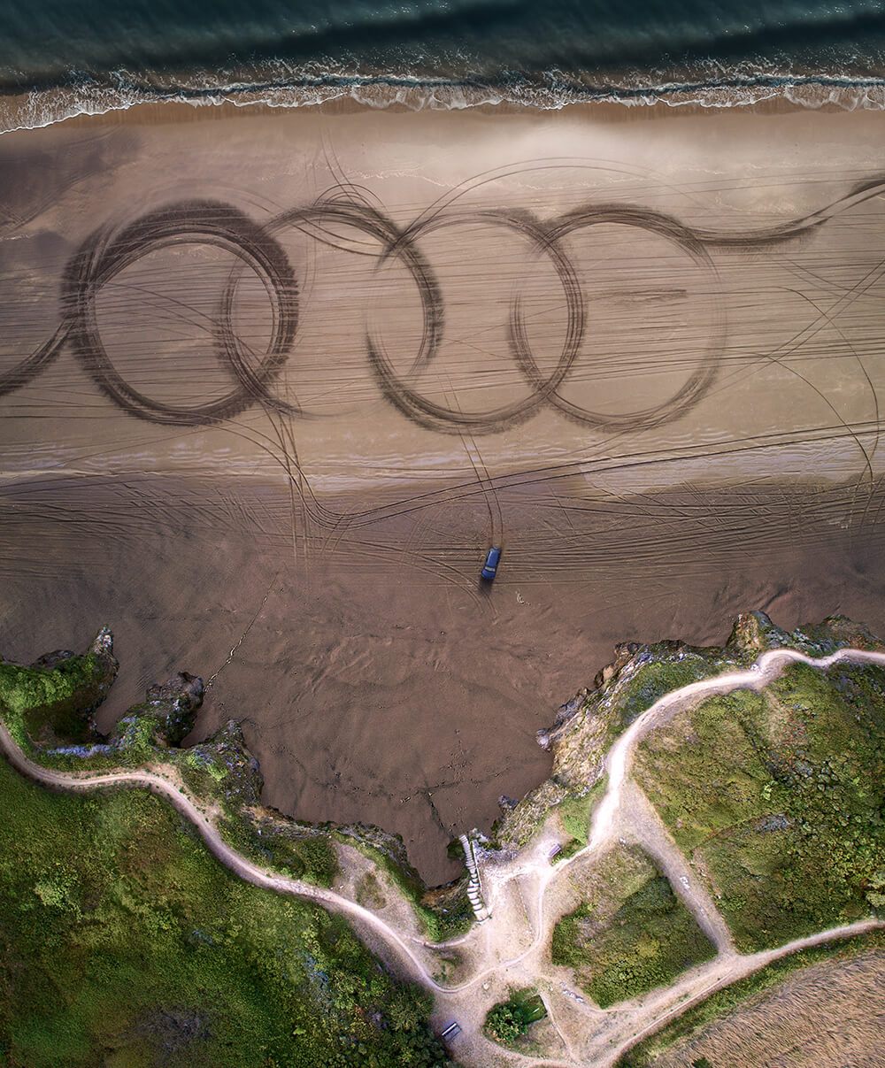 Creating tyre tracks in the sand to represent the Audi rings.