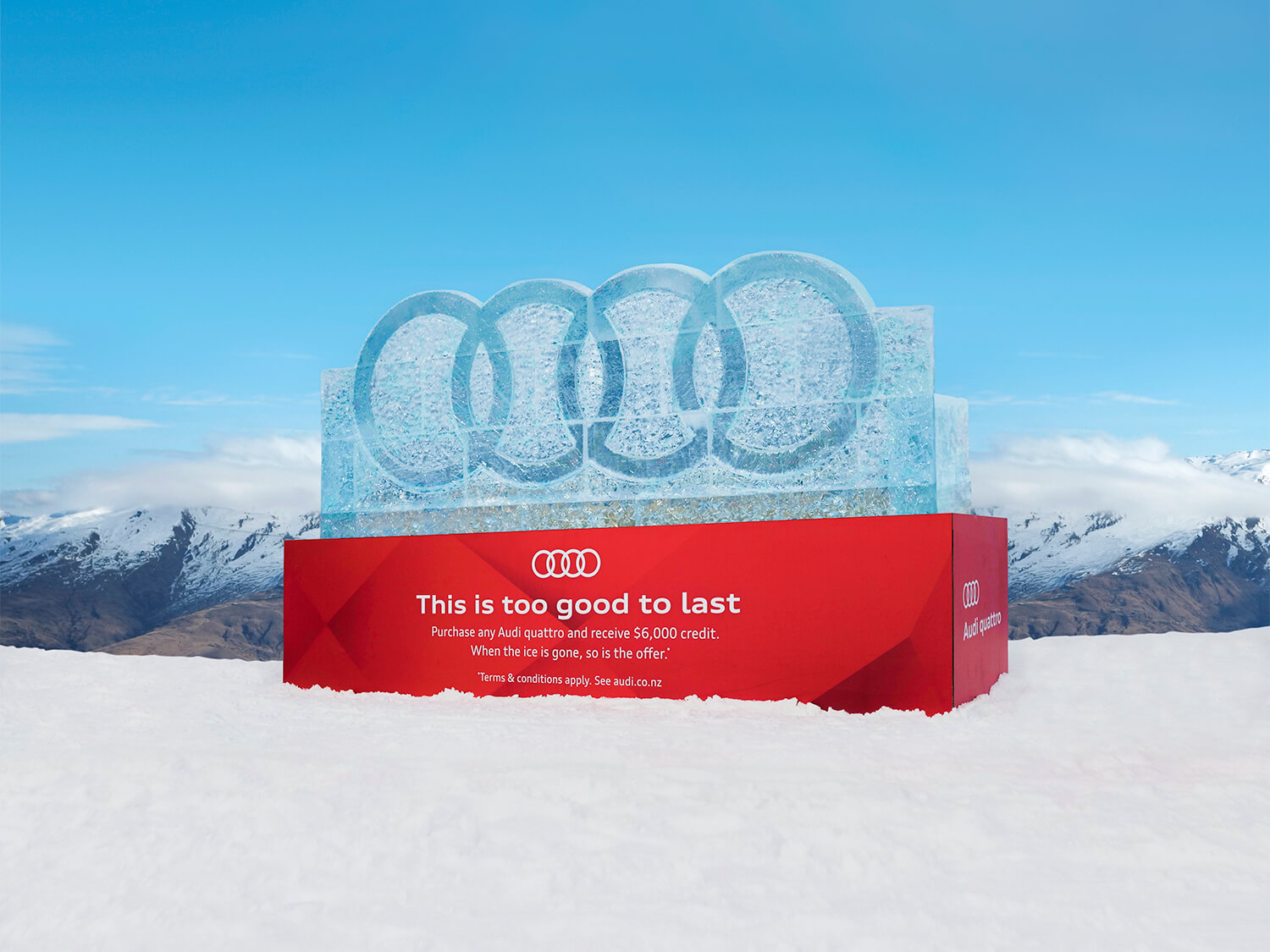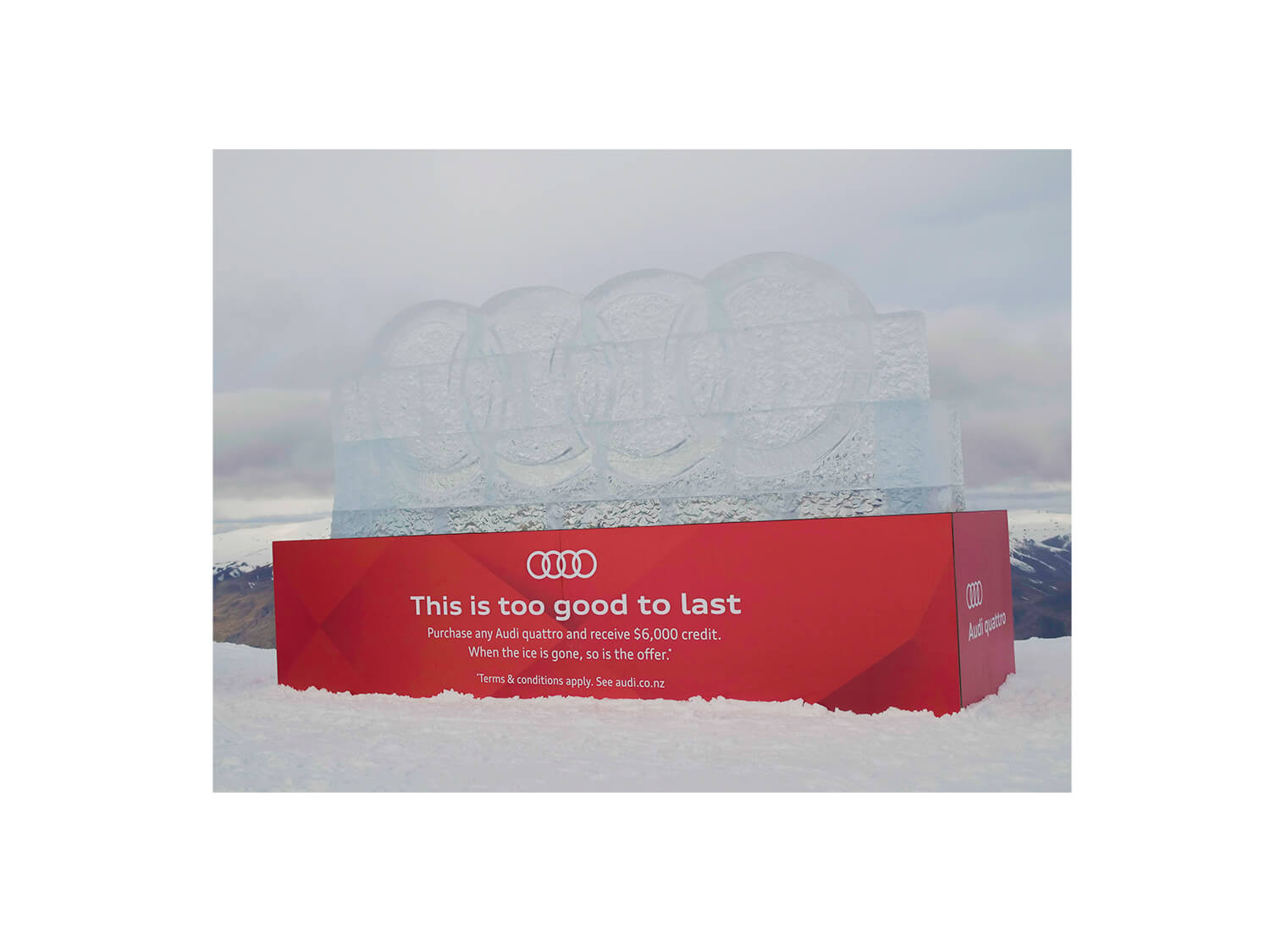 With a deal being offered on a new Audi while the ice sculpture lasts, this hero shot needed some work to get to the final result.