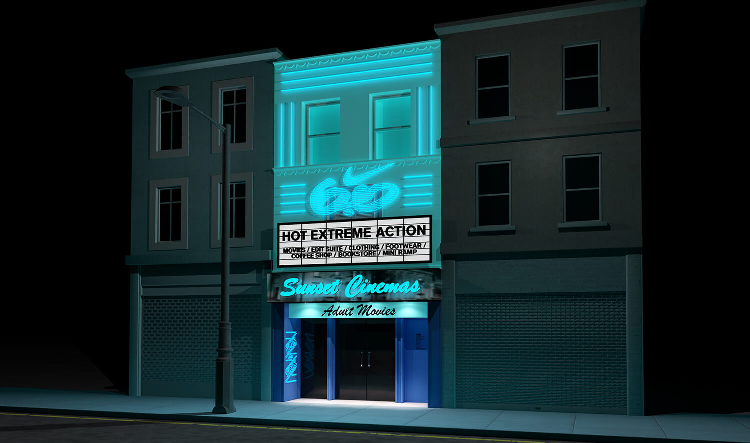 The idea was to turn a derelict Adult Cinema in London’s Soho into a pop up store for Nike 6.0. Unfortunately this project never came to fruition.