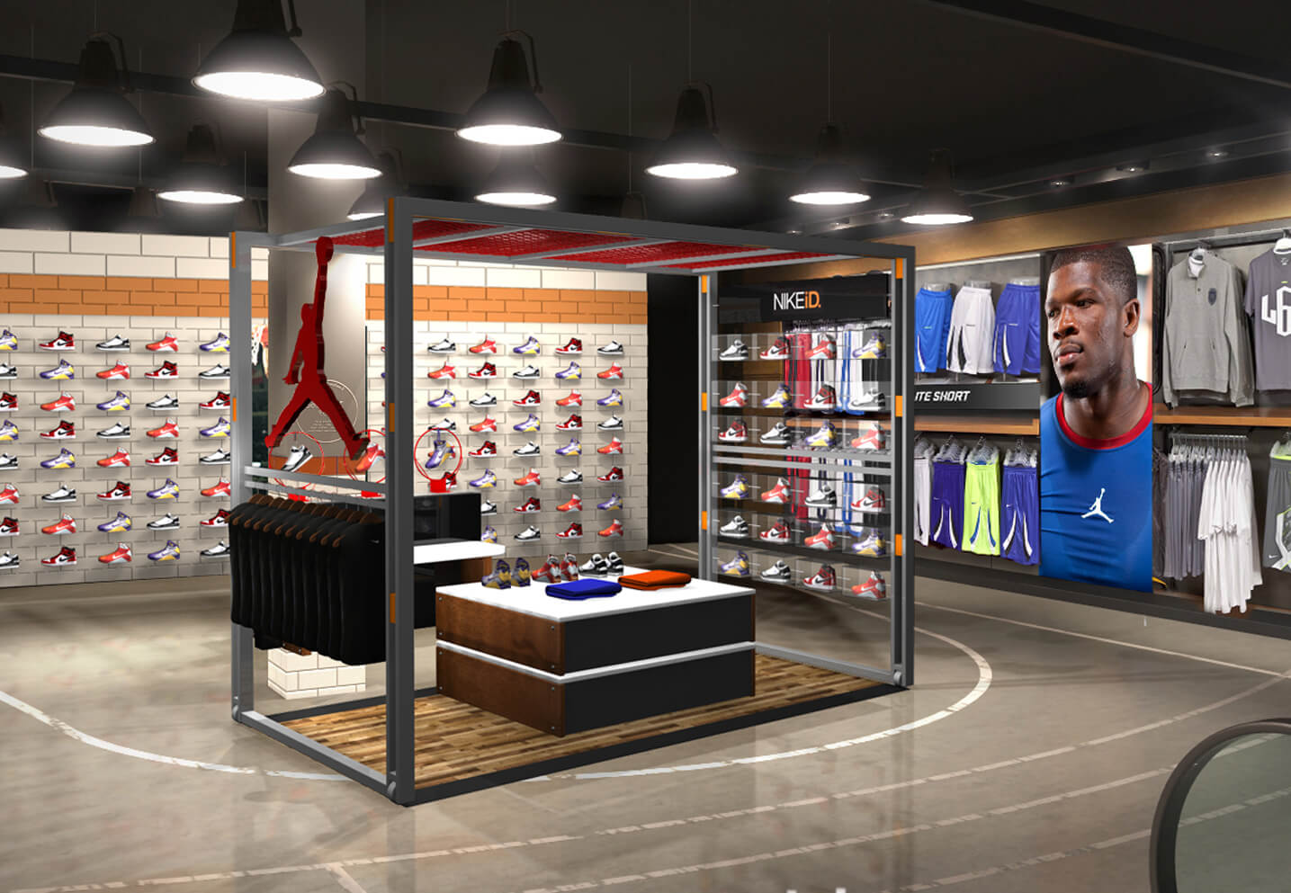 A Jordan display for NikeTown London. These visuals were used to help sell the idea into the client, Nike UK.